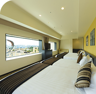 Start the day right with the electrifying sight of Universal Studios Japan just outside of your window. Park View Rooms, located on the lower floors of the hotel, give guests a direct look at some of the most thrilling attractions at Universal Studios Japan. Watch as rollercoasters slice through the air while park goers make their way through the different themed areas below. The view alone will get you jazzed up for an exciting day and when it’s over, you’ll have a comfortable place to recharge afterwards.